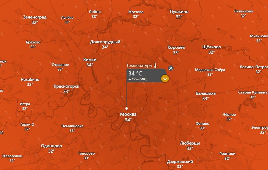 🥵 Температура в Москве на данный момент — 34-36 градусов в Цельсию