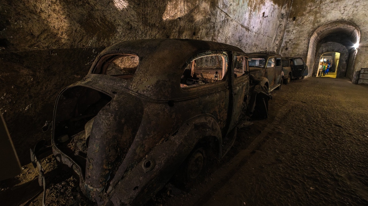 Затем, с 50-х по 70-е годы, эти подземные катакомбы использовались как государственная штрафстоянка, где хранились конфискованные автомобили. Сейчас они выставлены на обозрение как антикварные экспонаты.