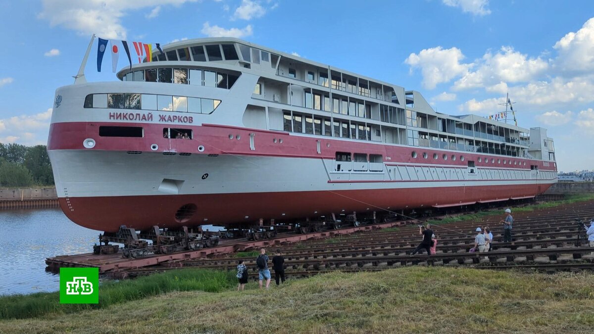[ Смотреть видео на сайте НТВ ] Пополнение в составе российского речного флота. В Нижнем Новгороде торжественно спустили на воду новейший четырехпалубный круизный лайнер. Лайнер получил название «Николай Жарков». Так звали выдающегося советского судостроителя. Долгие годы он возглавлял завод «Красное Сормово», со стапелей которого и сошел новый корабль. Судно построили чуть больше, чем за два года. На теплоходе будет все для комфортного отдыха. Просторный ресторан с панорамным остеклением на два борта, каюты с балконами и верандами, бассейн, зона спа. Лайнер рассчитан на 180 пассажиров. Первый вице-премьер Денис Мантуров в своем поздравительном видеообращении отметил, что теплоходы такого типа будут курсировать не только по рекам, но и в Каспийском, Азовском, Чёрном и Белом морях, а также в акватории Финского залива. В настоящее время на отечественных верфях строится девять круизных судов вместимостью от 140 пассажиров. Они должны быть сданы в течение двух лет. Это позволит расширить н