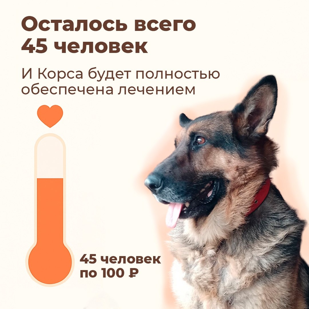 🐾 Осталось всего 45 человек. И Корса будет полностью обеспечена в июне. У неё тяжёлая аллергия. Мы уже купили все препараты — дорогие, но эффективные. Теперь осталось только добрать хвостик сбора. 📍 Нужно: 11 865 ₽ ❤ Собрано: 7 400 ₽ 🧡 Осталось: 4 465 ₽ ⠀ Если 45 человек скинут по 100 ₽ — всё, сбор закрыт. Можно быть тем, кто сделал последний шаг. Как помочь? На р/с приюта по СБП: https://vk.cc/cKu7YH На р/с приюта по QR коду: https://vk.cc/cKu867 На р/с приюта по реквизитам: https://vk.cc/crI7qu Отчет по сбору: https://vk.cc/cMFb7F Даже 100 рублей — это один день, когда ей не больно жить.