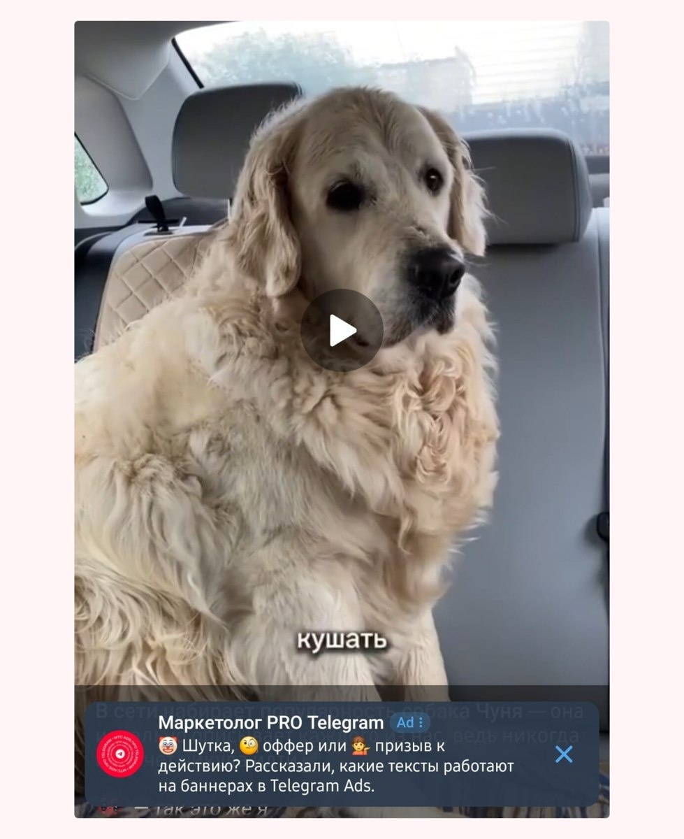 Telegram будет показывать рекламные баннеры в видео — они расположены в нижней части экрана, не перекрывая основной контент. Реклама появляется через пять секунд после начала просмотра и показывается на протяжении девяти секунд, затем её можно закрыть vc.ru/telegram/2093670