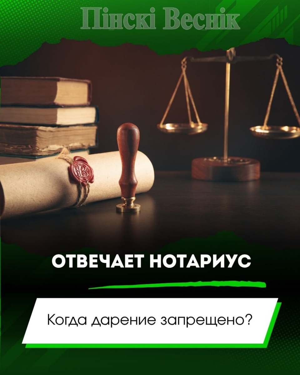🔻Договор дарения в Беларуси ограничен статьей 546 Гражданского кодекса. Не допускается дарение, кроме обычных подарков стоимостью до двадцатикратного размера базовой величины, в следующих случаях: от имени малолетних и недееспособных — только законными представителями; работникам здравоохранения и образования — от граждан, находящихся в этих учреждениях, и их родственников; между коммерческими организациями — за исключением некоторых случаев, установленных законодательством. Для дарения имущества в общей совместной собственности требуется согласие всех участников. @Пинский Вестник ЮТУБ | САЙТ| ИНСТ | ВК | ОК | ФЕ | Прислать новость