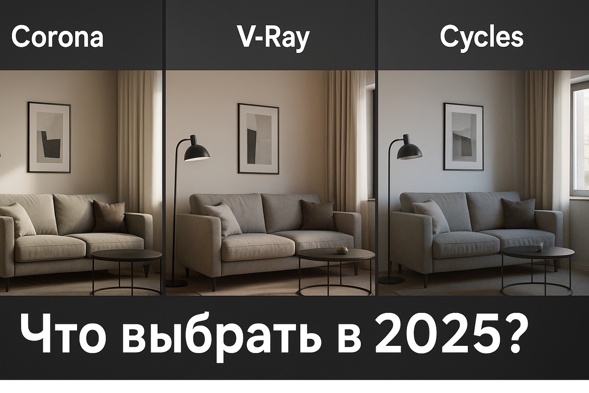 Вариантов вроде много, но по факту чаще всего крутятся три имени: Corona, V-Ray и Cycles. Я работаю в визуализации интерьеров и архитектуры. Пробовал все три движка — в этой статье расскажу, в чём разница, что удобнее, что быстрее, а где больше нервов. ✔️ Архвиз, ✔️ интерьеры, ✔️ каталожные рендеры Если работаешь в Max и делаешь интерьерку — Corona просто топ. Меньше кликов — больше результата. ✔️ Архвиз, ✔️ экстерьеры, ✔️ анимация, ✔️ геймдев, ✔️ кино V-Ray — как ручная коробка в машине: сложно, но мощно. Подойдёт тем, кто понимает, что делает, и хочет контроль. ✔️ Blender-проекты, ✔️ фриланс, ✔️ анимации, ✔️ геймдев Если ты в Blender — Cycles будет естественным выбором. Но для фотореалистичного архвиза из коробки подойдёт не всегда. Если ты новичок и работаешь в Max — бери Corona, не пожалеешь.