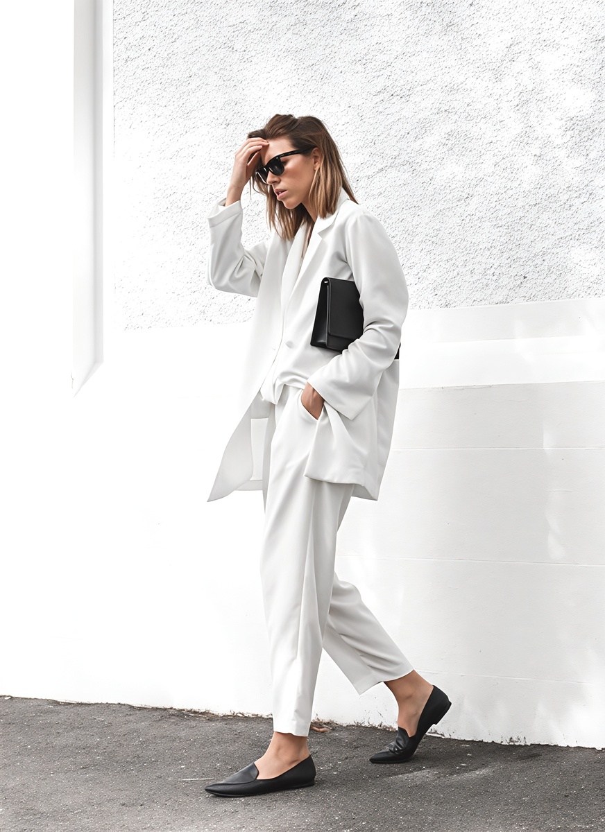 Хотите знать маленький секрет? Меняйте пропорции — и получите совершенно другое настроение. Белые брюки с чёрным топом выглядят свежее и современнее. А чёрное платье с белым жакетом — элегантнее и торжественнее.