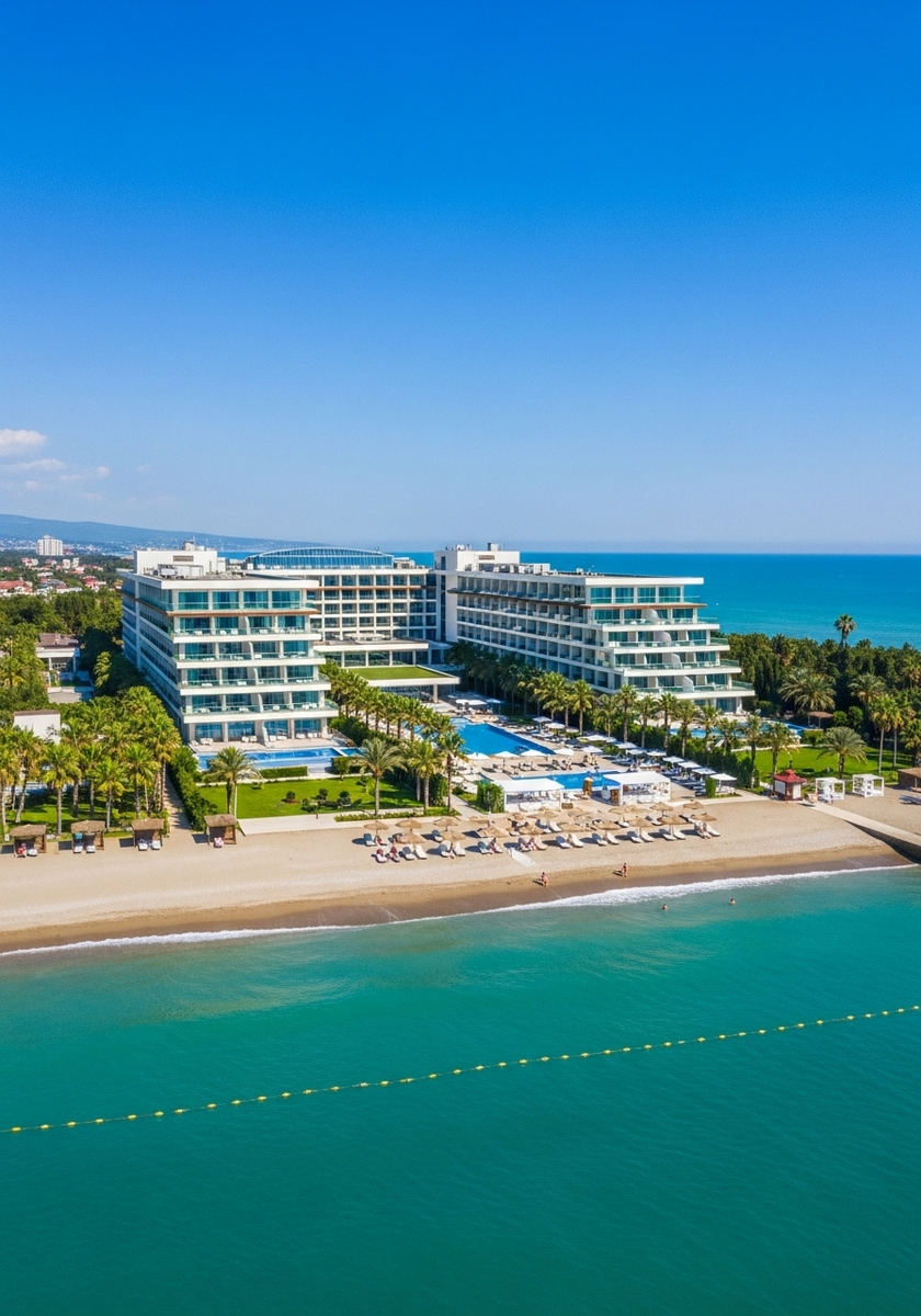 Гости размещаются в стильных номерах с минималистичным дизайном и панорамными видами на море. Отель предлагает разнообразную инфраструктуру: открытый подогреваемый бассейн, SPA-центр, современный тренажерный зал и бильярдную. Особенно гости отмечают высокий уровень сервиса и качественные завтраки по системе шведский стол.