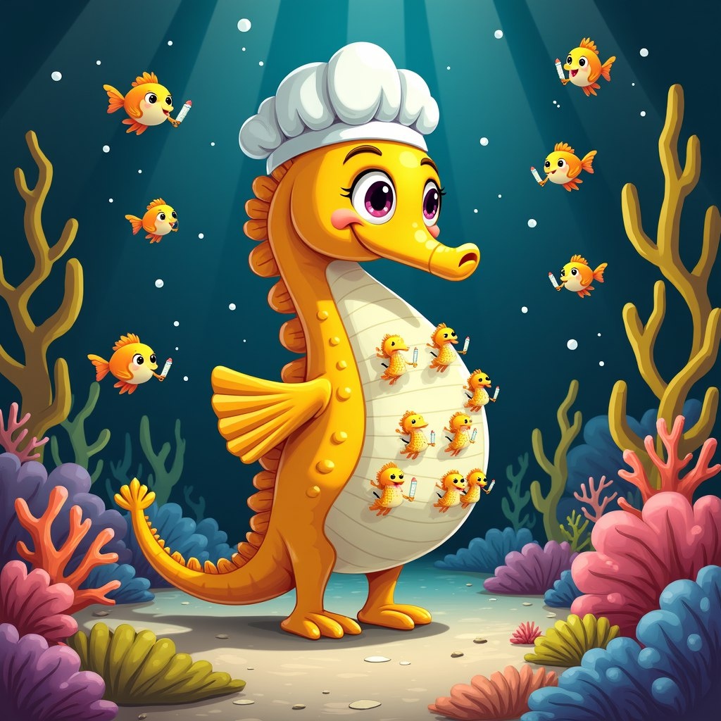 Самцы морских коньков вынашивают детёнышей и рожают их сами!