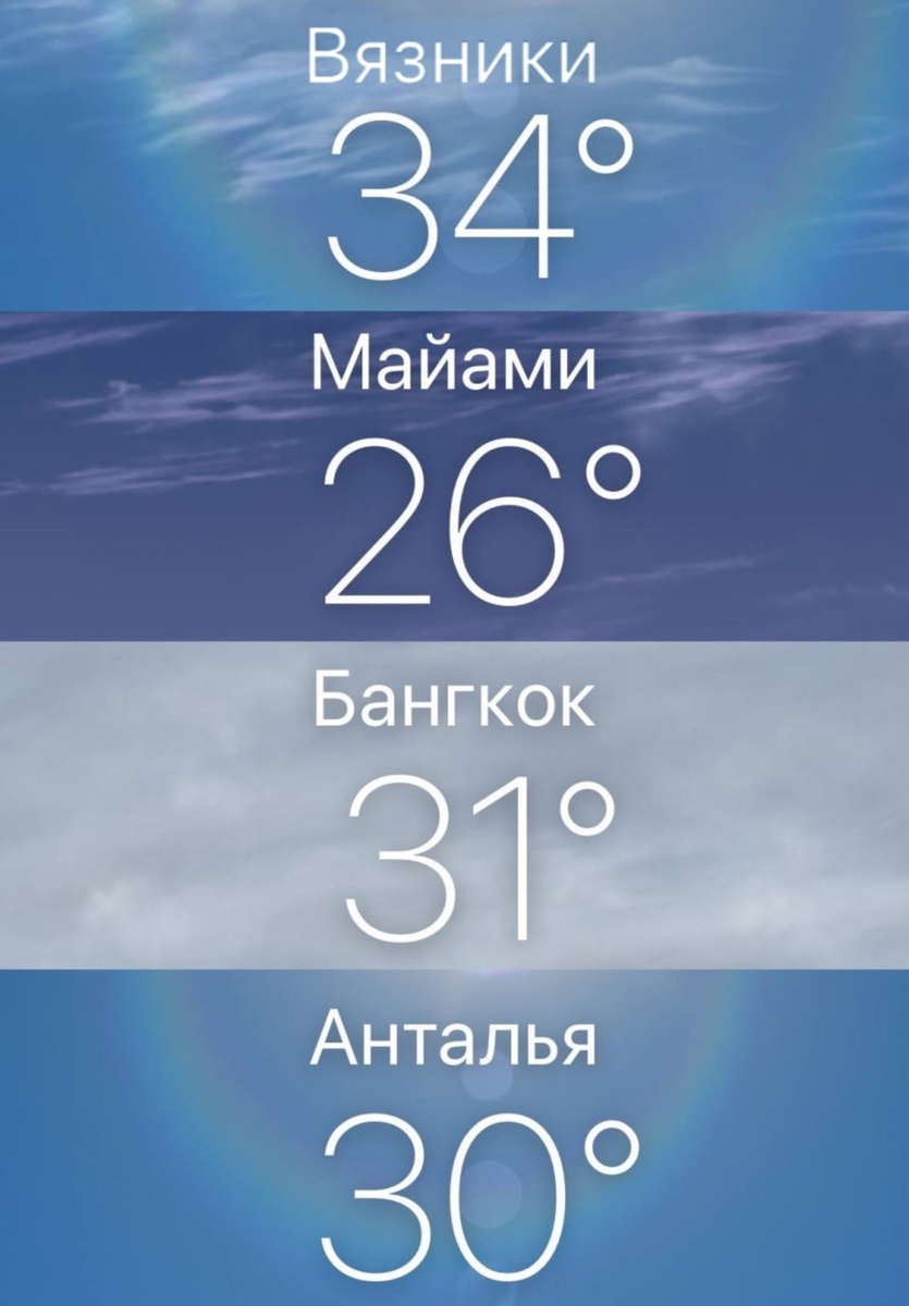 А вы все жаловались что лето какое то не такое. А у нас сегодня жарче, чем в Майами, Бангкоке и Анталье. +34℃ превратили Вязники в настоящий курорт. Синоптики предупреждают, что тропическая погода продержится ещё как минимум неделю. Как спасаетесь от жары?