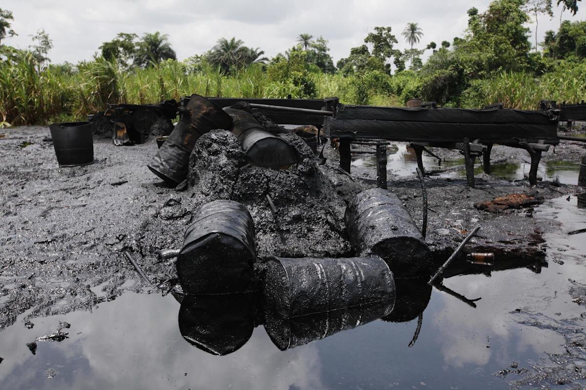 Разумеется, жители Нигерии, живя на огромных месторождениях, «добывают» нефть по чёрным схемам и просто подключаются к чужим нефтепроводам, ведь они долго ждали, что западные нефтяные компании создадут для них рабочие места и дадут работу. Но рабочие места открылись только для белых господ, а нигерийцы, справедливо считая нефть собственными народными богатствами, вынуждены воровать и перерабатывать её, что не нравится местным силовикам, которые, выполняя приказы властной прислуги транснациональных корпораций, натыкаясь на кустарные нефтеперерабатывающие заводы, просто сливают топливо в реки, откуда остальные потом пьют воду и ловят рыбу.