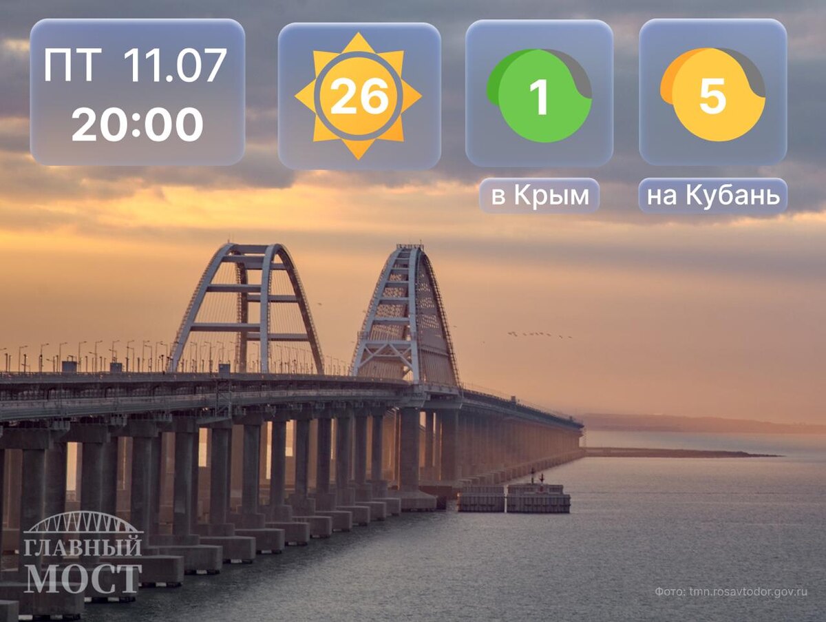 Продолжаем маршрут... 🔹Со стороны Краснодарского края небольшое скопление авто в зоне досмотра. 🔹 Со стороны Крыма в очереди на досмотр 410 авто — время ожидания около 2-х часов. UPD от 21:00 — очередь со стороны Крыма уменьшилась, время ожидания не более 30 минут. Главный мост | Подписаться