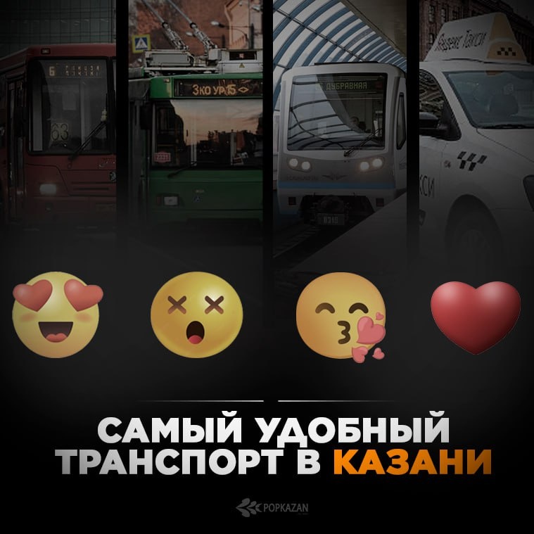 🧐 Пора выяснить, какой транспорт в Казани самый удобный Казанцы, выбираем своего любимчика ... 😍 - Автобус 😱 - Троллейбус 😘 - Метро ❤️ - Такси 😁 Наш telegram-bot про Казань
