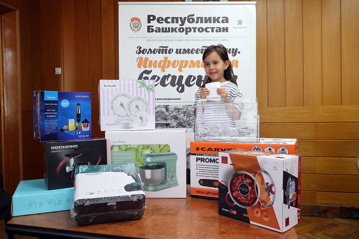 Названы имена победителей нашего розыгрыша призов Дорогие читатели, вот он и состоялся — долгожданный розыгрыш призов от «Республики Башкортостан» по итогам подписки на второе полугодие! Мы признательны всем, кто прислал для участия копии своих подписных квитанций. Отмечаем, что желающих попытать удачу набралось немало. Приятно, что вы читаете нашу газету, а мы стараемся для вас — держим в курсе всех событий, происходящих в республике. Итак, спешим объявить счастливчиков, выигравших ценные призы от нашей редакции. - Р. Фаизова (с. Аскино) — планетарный миксер; - М. Ипполитова (д. Константиновка, Кармаскалинский р-н) — микроволновая печь; - Х. Тухватуллин (с. Поляковка, Давлекановский р-н) — шуруповерт; - Г. Хафзетдинова (с. Мустафино, Бакалинский р-н) — набор столовой посуды; - М. Арсланов (с. Ермекеево) — электрическая мясорубка; - Р. Хашаева (г. Уфа) — бензопила; - В. Митрошина (г. Уфа) — погружной блендер; - Р. Ганеева (г. Уфа) — кастрюля; - Г. Харисова (с. Бакалы, Бакалинский р-н)