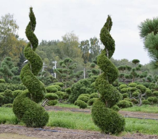 Туи с фигурной стрижкой в виде спирали — настоящее украшение сада. Такой элемент ландшафтного дизайна выглядит дорого и стильно, при этом создать его можно своими руками. В статье разберем, какие сорта туи подходят для спирали, как правильно стричь и ухаживать за растением. Не все виды туи легко поддаются фигурной стрижке. Лучше всего выбирать сорта с плотной кроной и вертикальным ростом: ⚠️ Важно! Растение должно быть здоровым, возрастом от 3–5 лет и высотой не менее 1–1,5 м. Спиралевидная стрижка туи — не сложная, но кропотливая работа. Главное — выбрать подходящий сорт, правильно разметить форму и не забывать о регулярном уходе. Уже через сезон ваша туя станет изюминкой сада! Хотите больше идей для сада? Подписывайтесь на наш канал — впереди много мастер-классов по ландшафтному дизайну! 🌿✂️