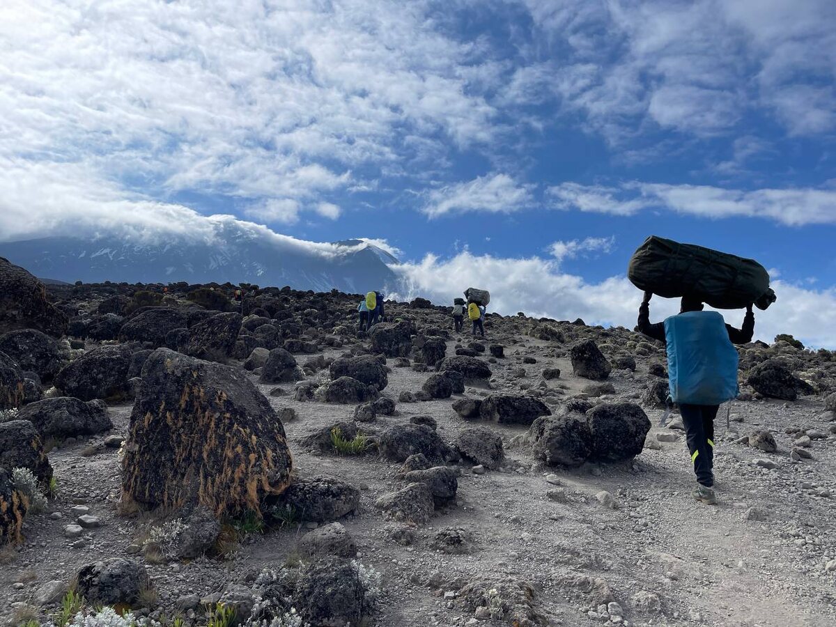 Первая часть перехода третьего дня пути - подъем к Лава Тауэр. Для этого надо пройти шесть километров и набрать высоту 800 метров. Первая часть пути была уныло-облачная. Но потом погода все таки сжалилась над бедными путниками. Начали показывать виды. А иногда даже солнце. Практически весть путь от лагеря до башни - это вулканическая пустыня, которую оживляют лишь рыжие мочалки мха на камнях. Ну, и люди тоже оживляют, конечно. Поднялись мы чуть больше чем за пять часов, достигнув отметки 4620 метров. Неудивительно, что всех немного придавило такой высотой.