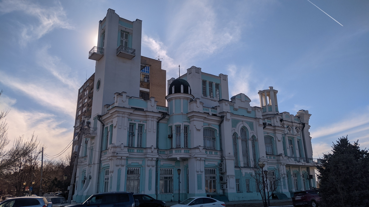 На фото - здание астраханского ЗАГСа Да, да, это ЗАГС. Но это сейчас так. А изначально здание было построено для торгово-промышленной биржи в далеких уже 1906-1910 годах. Архитектор здания Виктор Вальдовский. Построили здание на местной "стрелке" - в районе слияния Волги и Кутума. Тут в царские времена шла бойкая торговля, особенно рыбой. Но всё изменилось после революции 1917 года - в здании разместили политотдел Волжско-Каспийской военной флотилии. Позже тут размещались яхт-клуб, типография и даже столовая! И только в 1964 году здание отдали под городской ЗАГС. Который здесь и сейчас размещается.