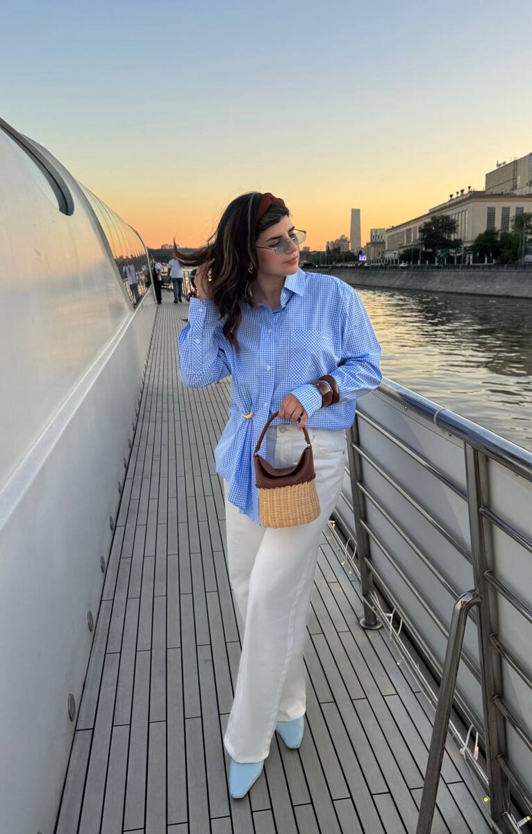 Лук дня для речной прогулки и еще одна идея с брошкой в копилку #способыстилизации 🩵🤍🤎