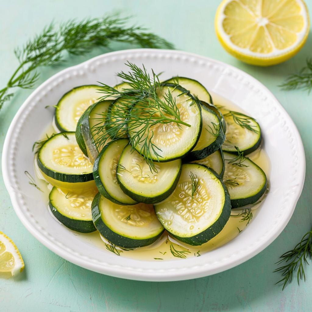 ▌ Рецепт маринованных кабачков ▌ Ингредиенты: - Кабачки молодые — 1 кг - Вода — 700 мл - Уксус столовый 9% — 80–100 мл - Сахар — 1 ст.л. - Соль крупная — 1 ст.л. - Чеснок свежий — 2 зубчика - Укроп свежий — небольшой пучок - Перец черный горошком — 5 шт. - Лавровый лист — 2 шт. - Гвоздика — 2 бутона - Масло растительное рафинированное — 1 ч.л. --- ▌ Пошаговая инструкция приготовления: 1. Подготовка продуктов - Молодые кабачки помойте и обсушите бумажным полотенцем. - Нарежьте кабачки тонкими кольцами толщиной около 3 мм. - Чеснок очистите и мелко порубите ножом либо пропустите через пресс. - Свежий укроп промойте холодной водой и мелко нарежьте. 2. Приготовление рассола - Налейте воду в кастрюлю и поставьте на огонь. - Добавьте соль, сахар, лавровый лист, перец горошком и гвоздику. - Доведите раствор до кипения и варите на среднем огне примерно 2 минуты. - Затем добавьте уксус и масло, перемешайте и снимите с огня. 3. Укладка ингредиентов - Банки простерилизу
