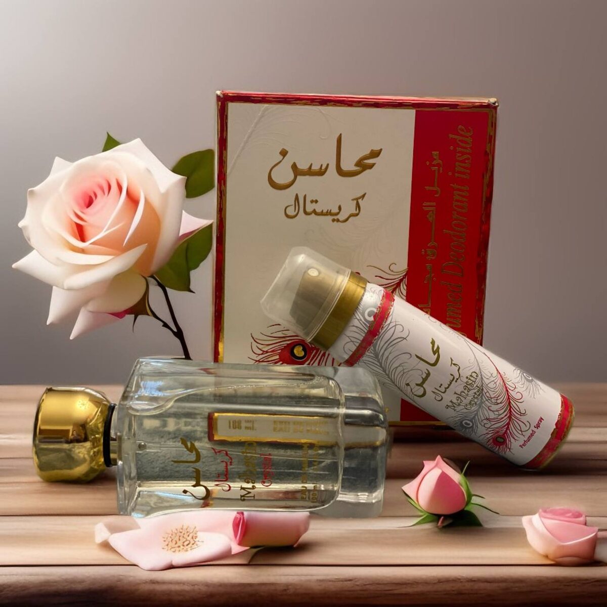 Mahasin Crystal #Lattafa Perfumes — это аромат для женщин, он принадлежит к группе цветочные древесно-мускусные