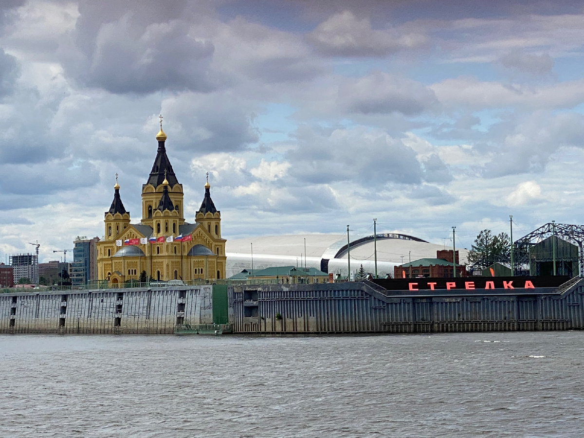 Рядом сверкал стеклянный купол спортивного комплекса, а левее, на высоком берегу, ещё виднелись стены Нижегородского кремля и старинные храмы.