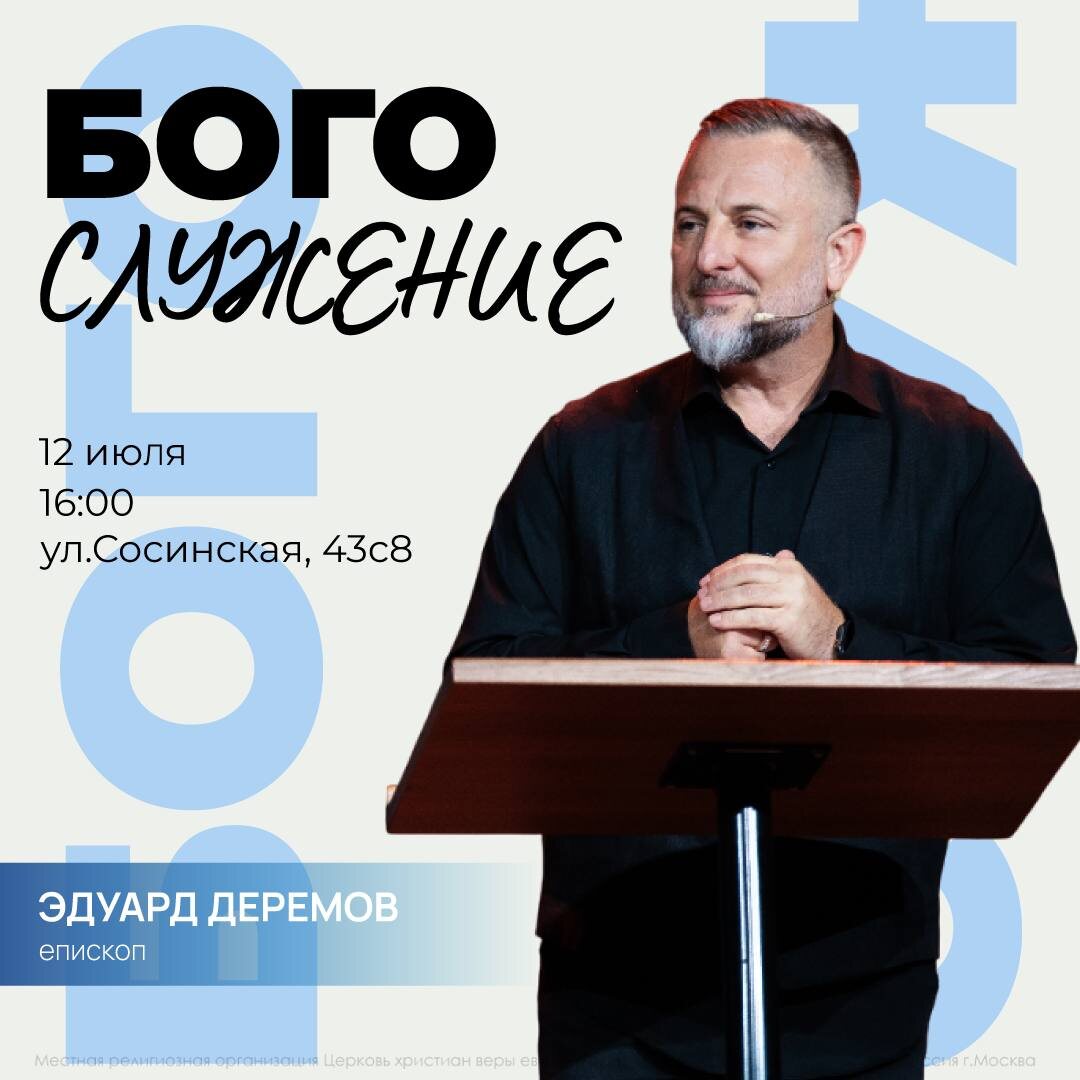 Дорогие братья и сёстры, приглашаем вас на Богослужение! Пусть это время духовного обновления и вдохновения, когда нам будет служить епископ Эдуард Деремов, станет для вас особенным! Онлайн трансляция Богослужения: https://chm12.ru/live 💻