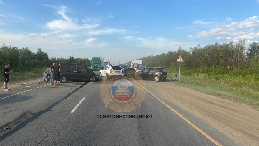 На выезде из Саратова столкнулись 5 машин: образовалась пробка