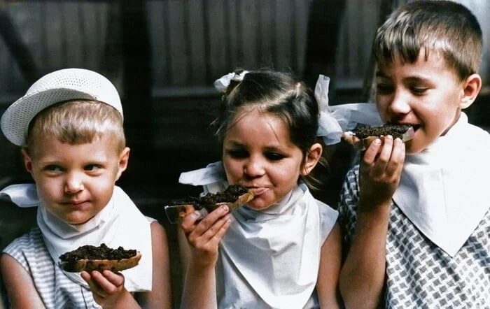 ⏳Воспитанники детского сада едят бутерброды с черной икрой