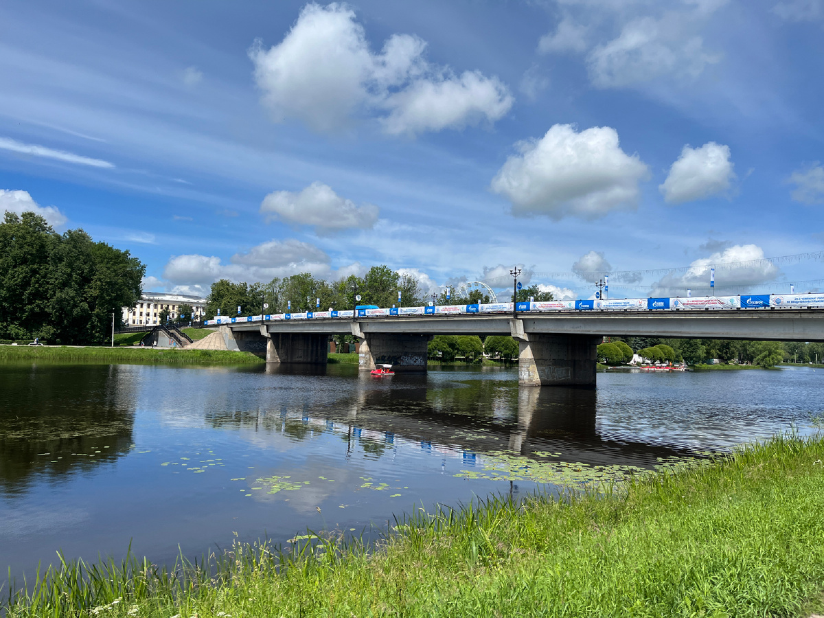 2. Центральный мост, находящийся в створе проспекта Ленина, был построен в 1955 году (реконструирован в 1991-1994), однако до Второй Мировой войны главная городская переправа в виде деревянного моста, который часто страдал от ледохода и паводка, находилась выше по течению - у площади. Обратите внимание на украшения к фестивалю воздухоплавания - хоть с этого события и пытаются сделать местную фишку, конкретно в 2024-м всё было организовано максимально неудобно: