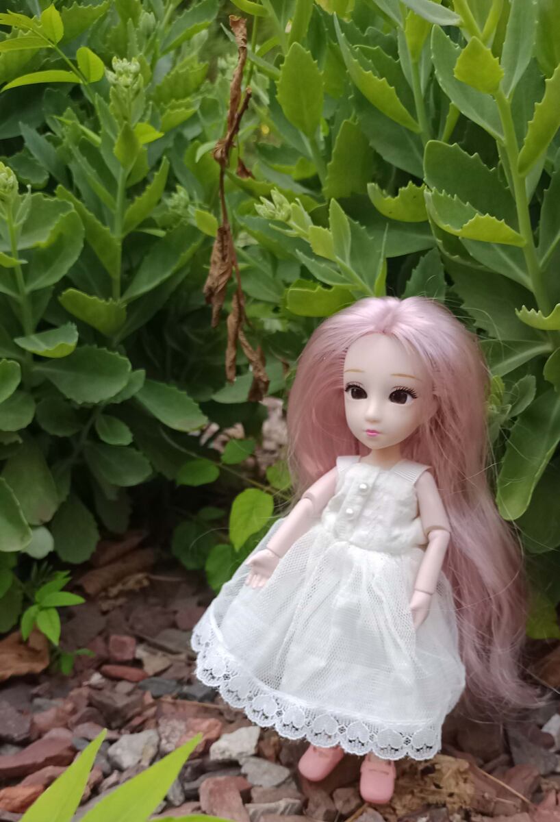 - Но иногда случается так, что кукла выбивается из общей коллекции, но не поселить у себя просто невозможно. Такой стала для меня Марина Пау. Или вот эта розовая фейка. Головка куплена отдельно на Озон, а тело от баболей 20 см.