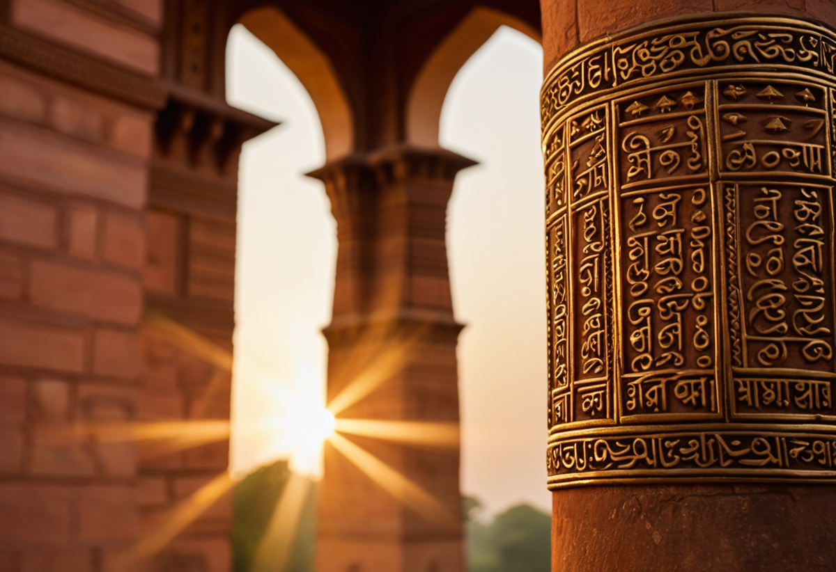🔹 Надпись: "Царь Чандра" (возможно, царь Чандрагупта II) 💡 Интересно: Колонна была частью храмового комплекса, а позже перенесена мусульманскими завоевателями. 🔹 Обычное железо в индийском климате покрывается ржавчиной за 10-20 лет.