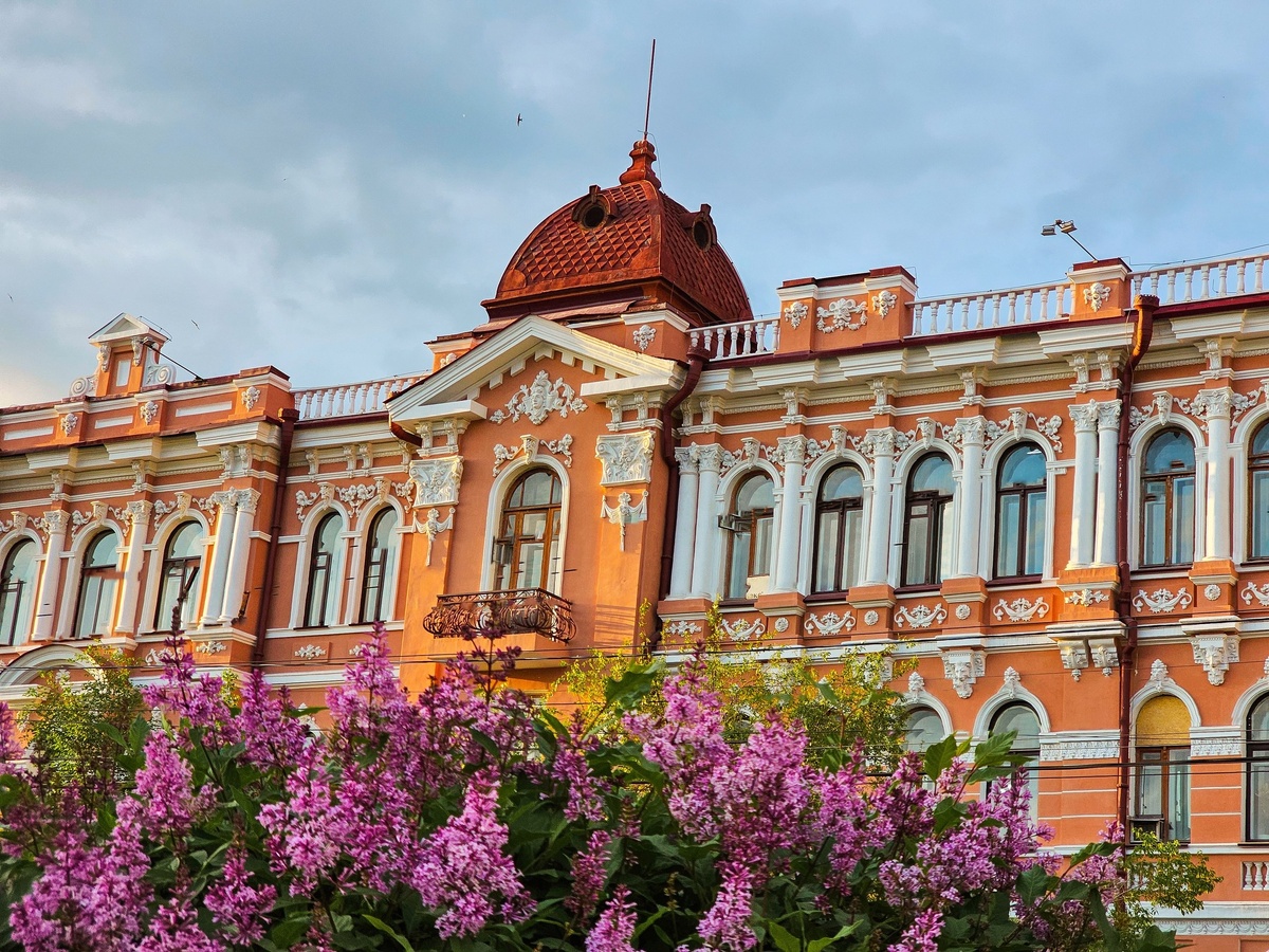 😍 Дом купцов Шумовых на фоне кустов сирени