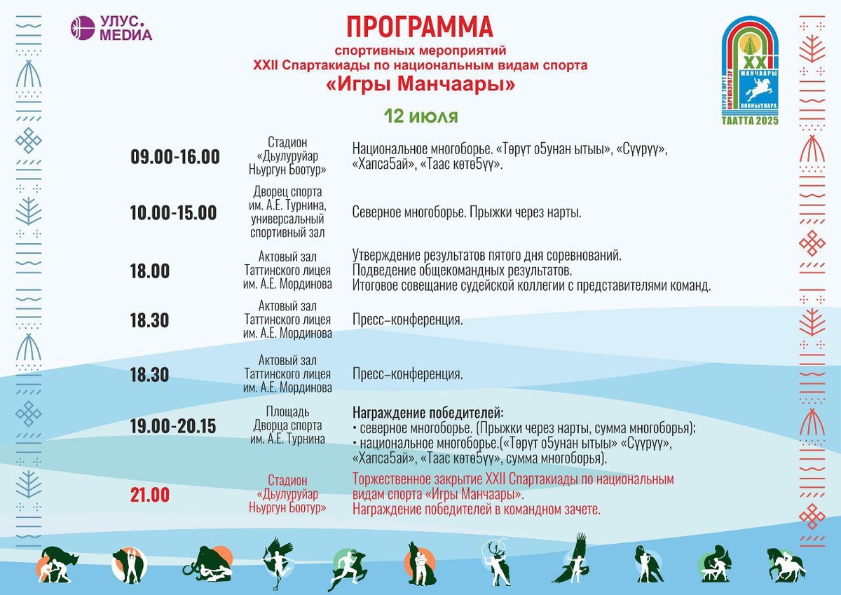 🏆Программа спортивных и культурных мероприятий XXII Спартакиады по национальным видам спорта «Игры Манчаары» - 12 июля