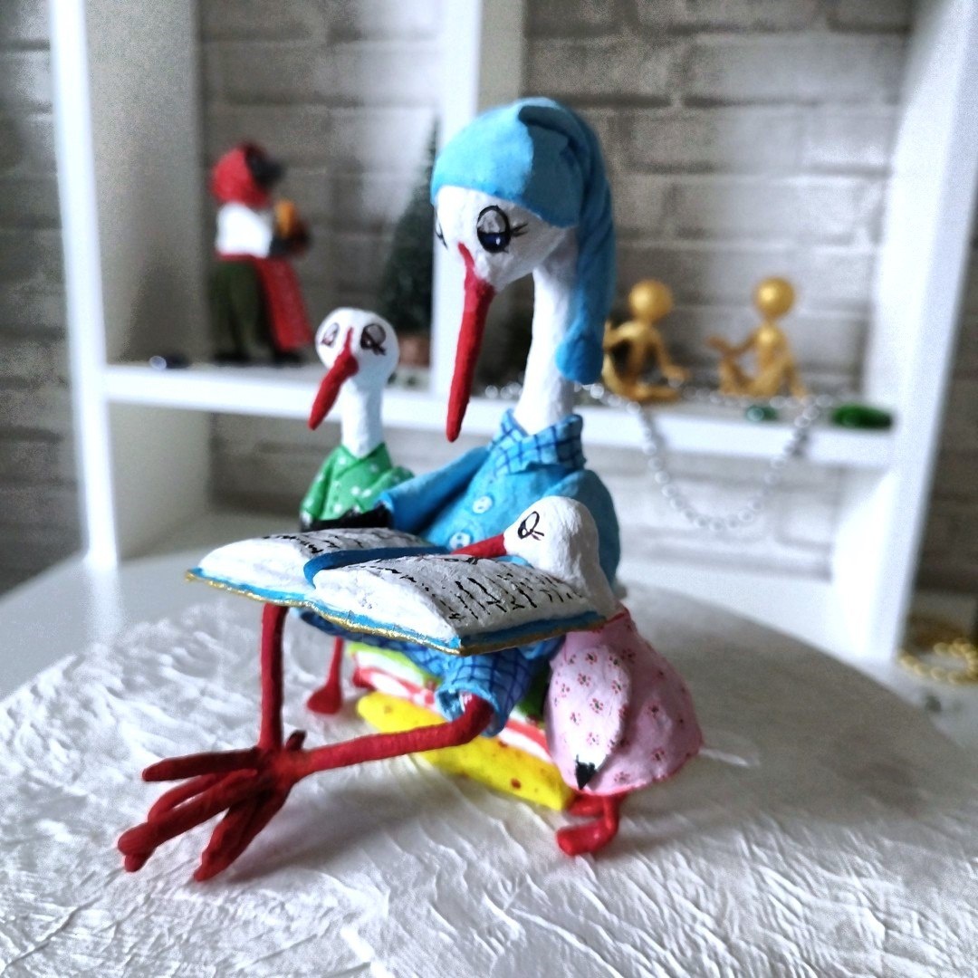 Вот такой заботливый дедушка аист читает сказки для своих подрастающих внучат. А как они увлечены тем, что он им читает перед сном. Милая сценка правда? Очень давно хотела их сделать, но не доходил ход и вот решилась.