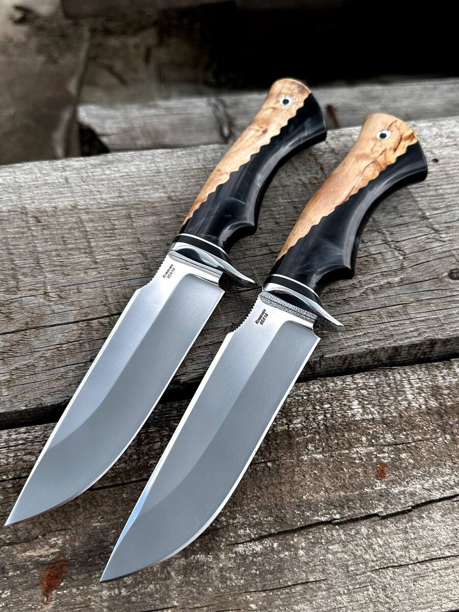 Надежный рабочий нож из нержавеющей стали 95х18 Идеальный выбор для охоты, рыбалки, туризма или хозяйственных задач. Клинок с твердостью 58 HRC и спусками от середины — выдержит серьёзные нагрузки и долго держит заточку. Режет как бритва! Рукоять — настоящее произведение искусства: гибрид стабилизированной карельской берёзы янтарь и чёрного акрила. Красиво, удобно, надежно. В комплекте — ножны из натуральной кожи. По желанию изготовим формованные ножны (+8000 руб). Цена: ~8 840 руб, цена: 7 512 руб по акции! Заказ и подробности — пишите в @Nazarklinokbot или на WhatsApp/Viber +79101343831 #нож #кузницаназарова #95х18 #ручнаяработа #охота #рыбалка #подарок #туризм