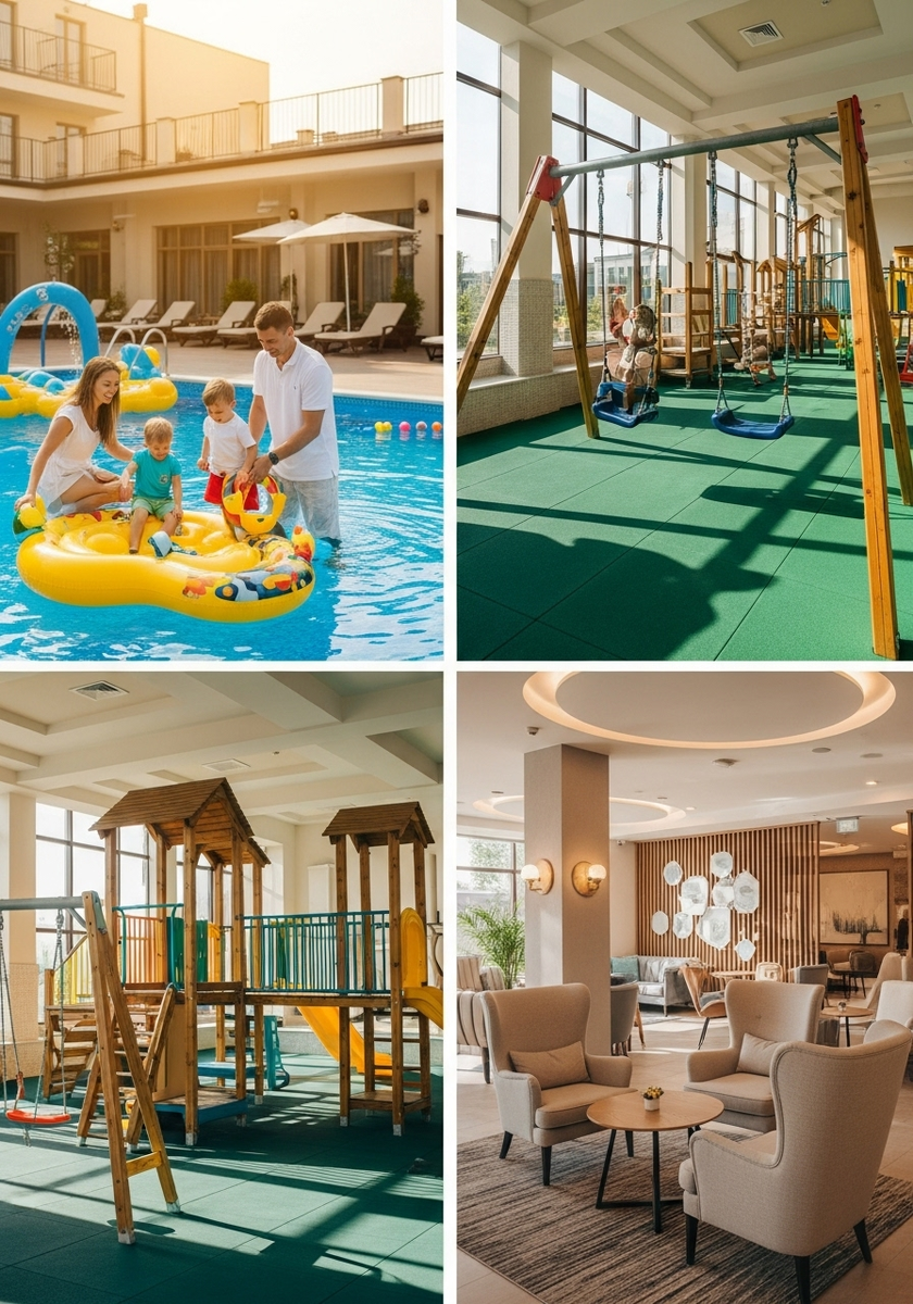 - В каких отелях Минска есть детские площадки и развлечения? Отель «Аква-Минск» и парк-отель «На том берегу» имеют собственные детские площадки, а гостиница «Беларусь» предлагает семейный бассейн с горкой.