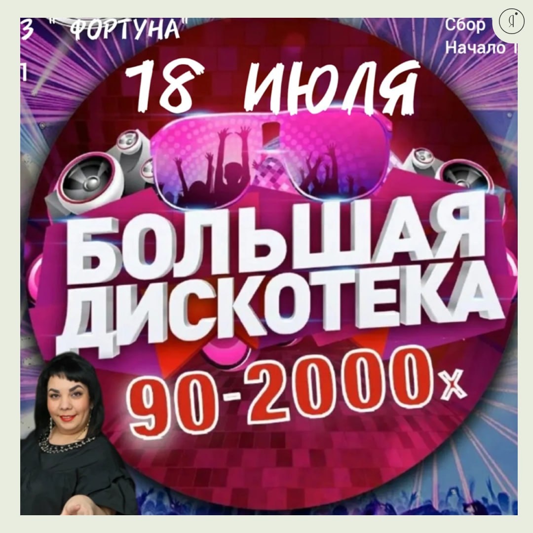 Большая дискотека 90-х, 2000-х #Вечером - конкурсы и игры - фишки вечера - музыкальные сюрпризы от ведущих артистов - ведущая вечера — Ксения Праздник - Лучшие хиты 90-х, 2000-х - Дресс- код 👟🧢 18 июля | 18:00-23:00 Банкетный зал «Фортуна», Чернышевского, 59 1500 руб. +79248635311 Online Якутия | Подписаться