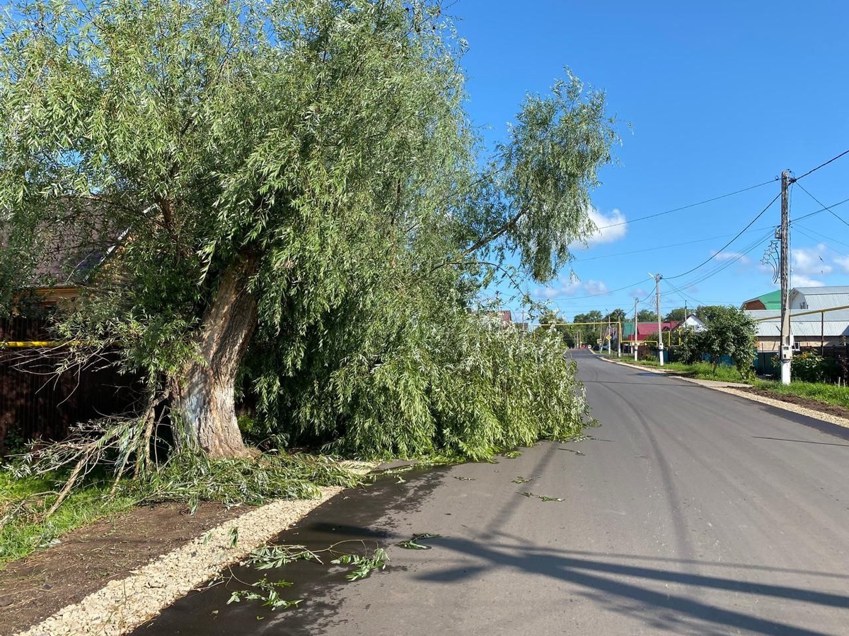 Последствия вчерашнего сильного ветра в Мензелинске. Улица Ленина.