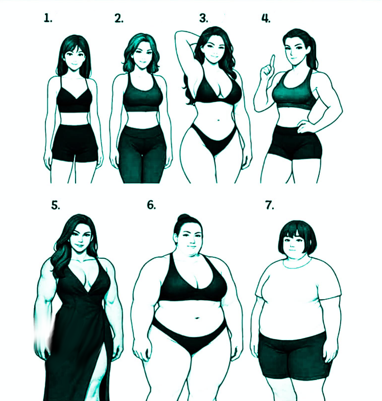 Изображение демонстрирует замечательное разнообразие женских типов телосложения, каждый из которых имеет свою уникальную форму и структуру. Это прекрасное напоминание о том, что красота и сила не имеют единого размера. От стройных и подтянутых до мощных и пышных — каждое тело рассказывает свою историю. Эти ярлыки — худая, подтянутая, в хорошей форме, атлетичная, мощная, сильная и полная, полненькая — всего лишь простые слова для описания широкого и прекрасного спектра человеческих форм. То, что один человек назовет «в хорошей форме», другой может назвать «атлетичным». Что действительно имеет значение — это не ярлык, а здоровье, сила и уверенность, которые вы чувствуете в своей собственной коже. Тела стройные, с видимой мышечной рельефностью и с более мягкими изгибами могут быть одинаково здоровыми и сильными. Форма нашего тела зависит от сочетания генетики, образа жизни, питания и видов деятельности, которые нам нравятся. Будь вы бегуном на длинные дистанции, пауэрлифтером, энтузиастом