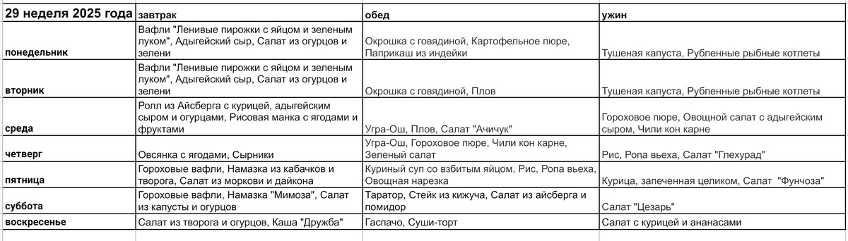 А вы заметили как летом время быстро летит?) Вот только показывала меню на прошлую неделю, а тут уже новая на подходе) Составила меню, вспомнила немного подзабытые рецепты. Например, рецепт адыгейского сыра. А ведь когда-то он был на пике популярности)))) В общем, смотрите, берите на заметку)) А теперь используемые рецепты: Ну вот, сегодня подборка своих рецептов получилась большой)))