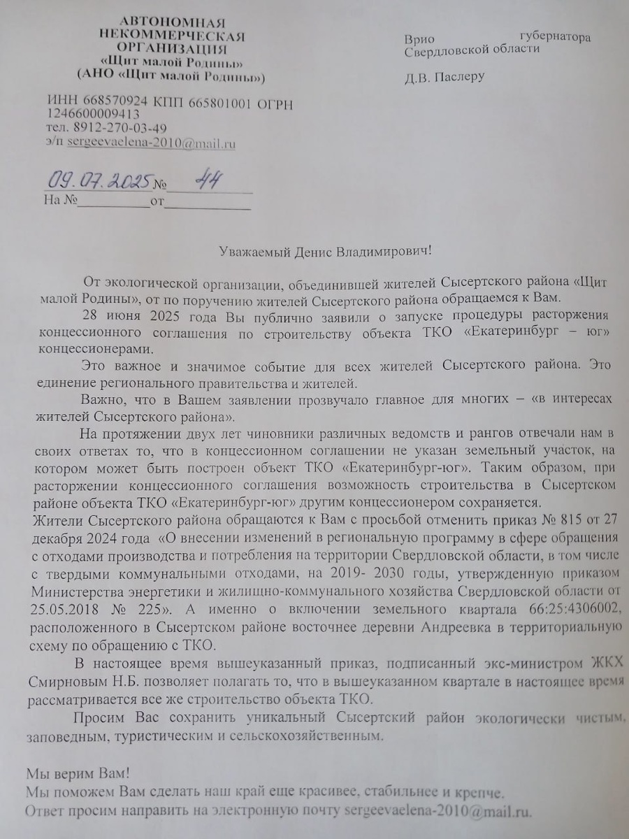 Жители Сысертского района просят Паслера отменить приказ бывшего министра ЖКХ. Активисты АНО «Щит Малой Родины» обратились к врио губернатора с просьбой отменить приказ бывшего министра ЖКХ Николая Смирнова. Согласно этому приказу, территория, прилегающая к деревне Андреевке, будет местом для размещения мусорного полигона. Также против этого документа Смирнова протестовала прокуратура. Мы в соцсетях: Вконтакте - https://vk.com/p.sysert Телеграмм - https://dzen.ru/id/63f23fa633985037574a7d54 Одноклассники - https://ok.ru/p.sysert Дзен - https://dzen.ru/psysert Подслушано Сысерть №1 Наши проекты: https://vk.com/topic-203954349_49682996