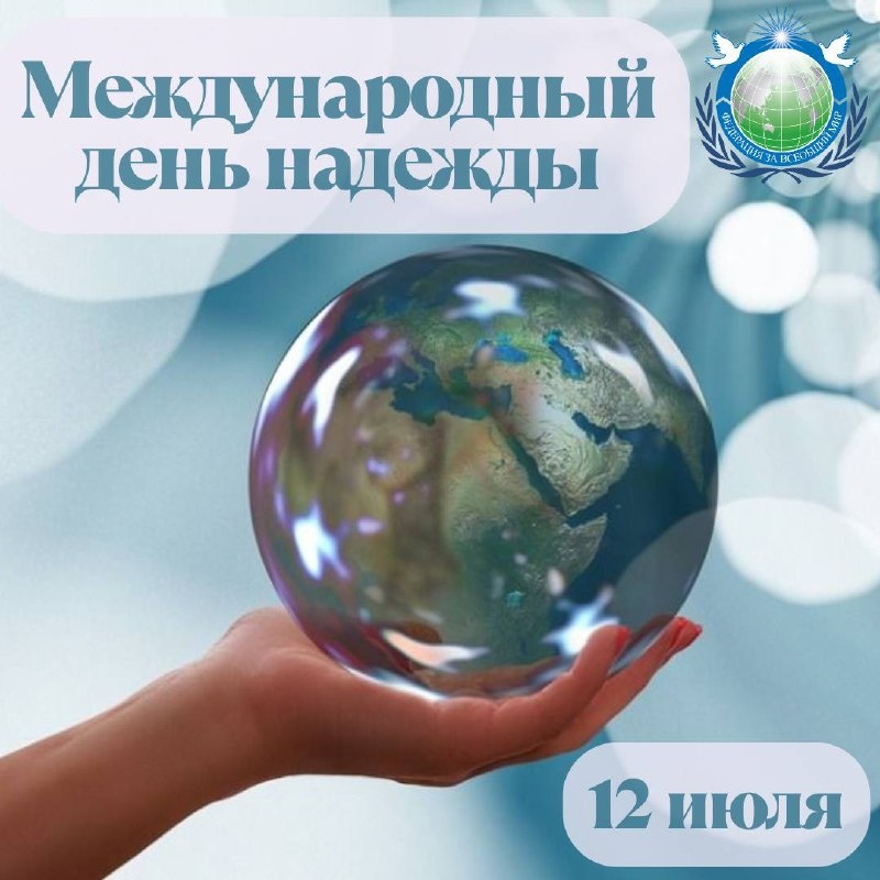 🌿 Международный день надежды 🗓 12 июля 2025 года Впервые в этом году международное сообщество официально отмечает Международный день надежды, учреждённый Генеральной Ассамблеей ООН как день укрепления единства, достоинства и стремления к миру. Федерация за всеобщий мир поддерживает эту инициативу и подчёркивает, что надежда — это не просто чувство, а мощная движущая сила. Она помогает людям преодолевать трудности, стремиться к высшему, вдохновляться и действовать ради общего блага. Надежда рождается в сердце семьи, растёт через образование и служение, и становится опорой для устойчивого и справедливого общества. Именно на этом основаны многие инициативы Федерации — от программ межрелигиозного диалога до воспитания молодёжи, просвещения и гуманитарной помощи. 📖 Символом веры в добро и единство стал проект «Всемирное писание» — антология священных текстов разных религий, изданная под эгидой Федерации, чтобы подчеркнуть духовное родство народов мира. 🕊 В этот день мы вспоминаем т