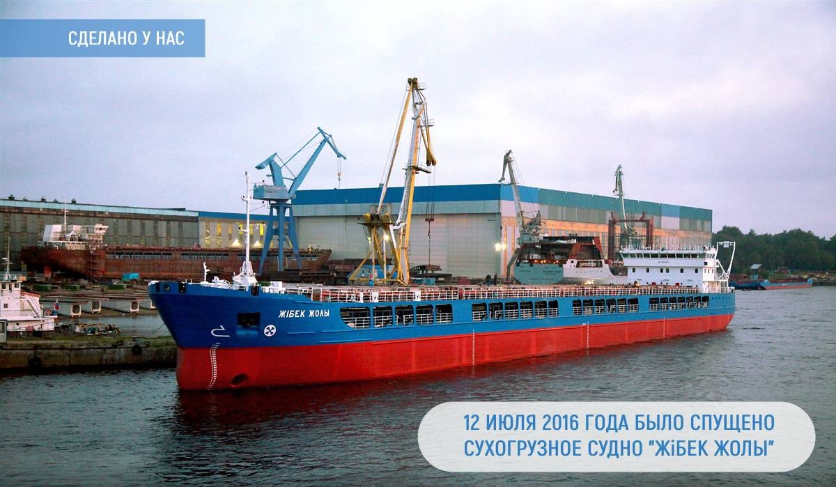 Сделано на Невском судостроительно-судоремонтном заводе ОСК 12 июля 2016 года было спущено сухогрузное судно «Жiбек Жолы», что в переводе с казахского означает «Великий шёлковый путь». Суда проекта RSD49 в соответствии с принятой в Морском Инженерном Бюро классификацией относится к классу «Волго-Дон макс», имеют максимально возможные для ВДСК габариты. Они предназначены для перевозки широкого спектра грузов, включая генеральные, сыпучие, контейнерные, лесные, зерновые, негабаритные и опасные грузы классов 1.4S, 2, 3, 4, 5, 6.1, 8, 9 в соответствии с международными правилами перевозки опасных грузов. Суда могут эксплуатироваться в Каспийском море, а также в Средиземном, Черном, Балтийском, Белом, Северном морях, включая рейсы вокруг Европы и в Ирландское море зимой. Сухогруз, спроектированный с использованием «сверхполных» обводов, имеет два грузовых трюма, один из которых обладает рекордной длиной. На данный момент судно успешно эксплуатируется заказчиком. #НевскийССЗ #ОСК #Строи