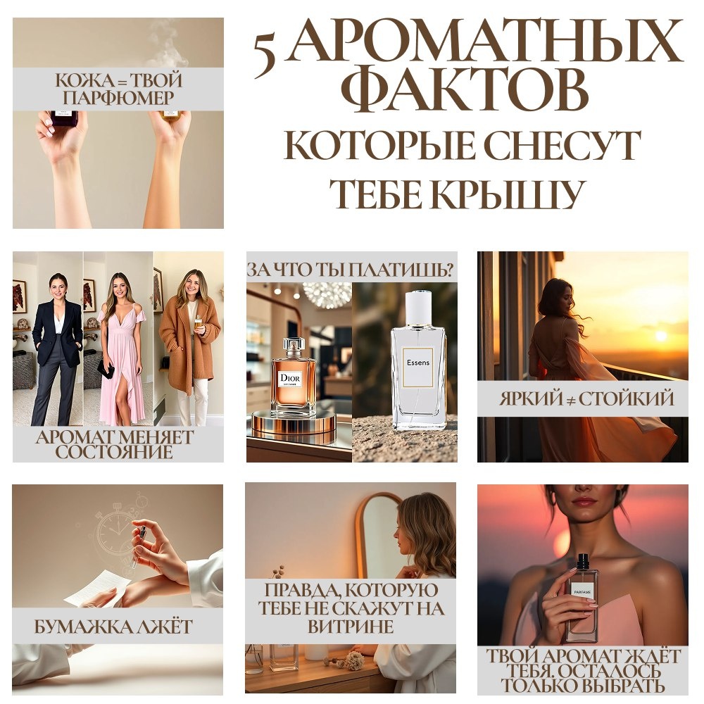 🚨 5 ароматных фактов, которые снесут тебе крышу И больше ты никогда не выберешь парфюм по-старому 💣 Факт №1: Твоя кожа — главный парфюмер, а не бренд 👉 Один и тот же люкс-аромат может пахнуть как мечта на твоей подруге …и как освежитель воздуха — на тебе. Потому что на каждой коже аромат раскрывается по-своему. ➡️ Вот почему у меня подбор — как диагностика: без «универсальных» решений. 💣 Факт №2: 70% цены люкса — это не про аромат Ты платишь за рекламу, звезду в кампейне, стеклянную витрину и магазин в центре. А не за стойкость или качество. 💎 В номерной парфюмерии — те же формулы, но без переплаты за понты. 💣 Факт №3: Чем ярче запах — тем быстрее он исчезнет Да, звучит нелогично. Но "пахучие" ароматы часто состоят из лёгких молекул. 🌬️ Они дают вау-эффект — и… испаряются через час. 📌 Стойкость = процент масел, а не «сильный запах».