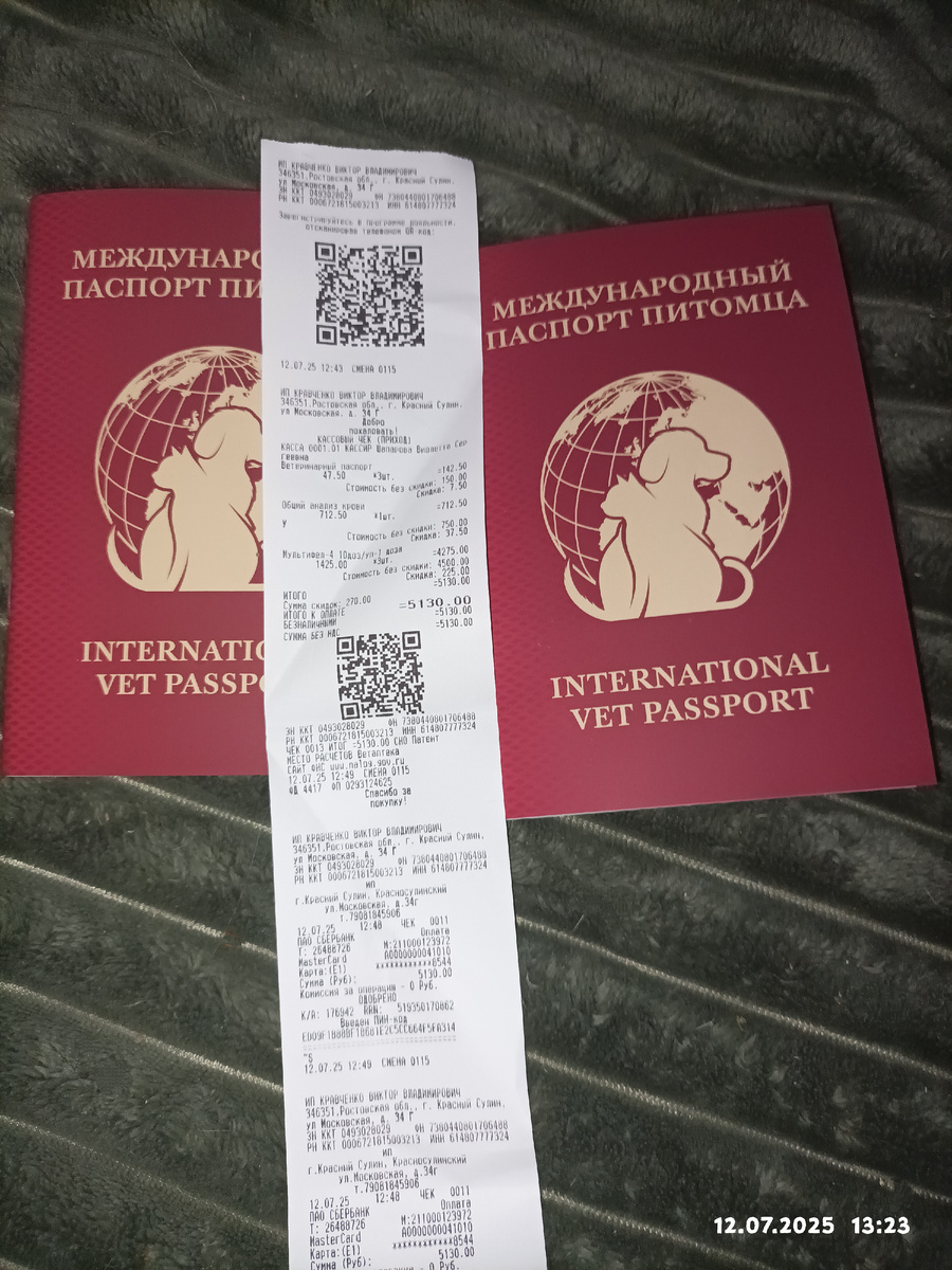 Привет! Ездили на прививки три красавицы ,всего вышло 5130 рублей. Дарси я не сделала во время потому что не могла найти паспорт. Оказывается я выкинула её паспорт вместо паспорта Джека. Всем взяла паспорта,Дарси теперь через год прививка,а Маме и Молли через три недели. Пришлось Молли везти без переноски,потому что не поместились они с Дарси вдвоем ,но ничего,она хорошо вела себя и на руках. В клинике очень жарко и поэтому у всех поднялась температура ,но потом открыли окна двери и стало по легче. Удивительно ,но Молли была само спокойствие,пока не попала на стол,перед прививкой меняли температуру и тогда она показала свои зубы,Мася тоже также))). Спасибо огромное за то что помогаете мне помогать животным ,спасибо за ваши добрые слова и за то что вы всегда рядом Здоровья вам и всего самого хорошего !