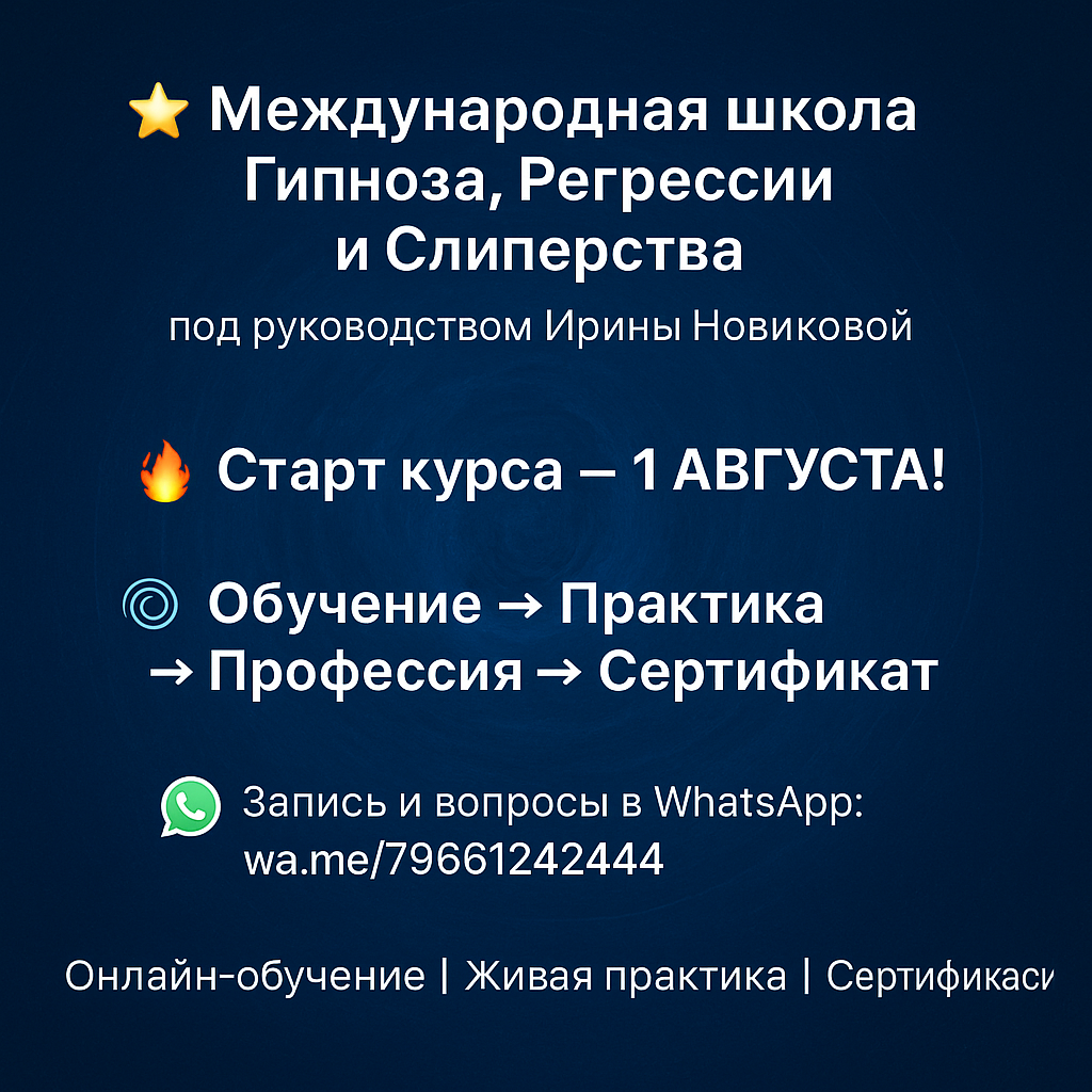 Международная школа № 1 Гипноза,Регрессии и Слиперства Ирины Новиковой.