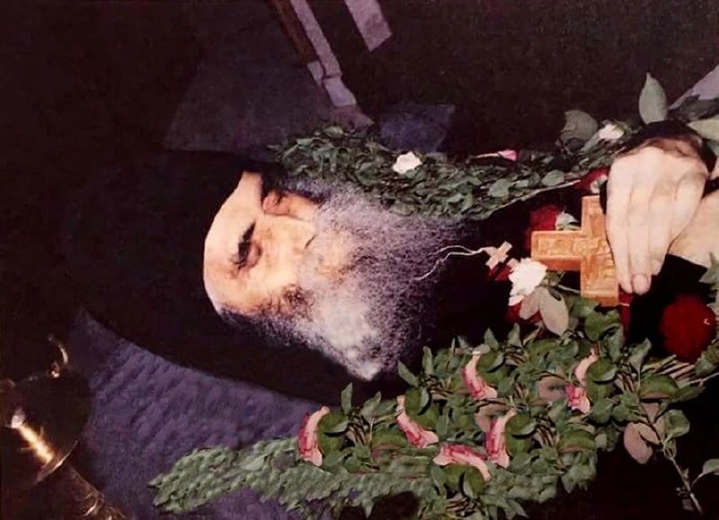 Его последняя ночь была мученической. В боли он призывал Пресвятую Богородицу. «Сладкая моя Панагия», – говорил он. Потом потерял сознание и около двух часов был без чувств. Придя в себя, он угасающим голосом произнес: «Мученичество, настоящее мученичество». После этого он мирно испустил дух. Был вторник, 12 июля 1994 года (н. ст.) одиннадцать часов утра. По старому календарю – 29 июня, память святых первоверховных апостолов Петра и Павла. Старец был погребен за алтарем храма преподобного Арсения Каппадокийского. О его кончине и погребении никто не узнал. Такова была его воля. Он хотел, чтобы его похоронили тихо и незаметно. Через три дня, когда о его кончине стало известно, началось невообразимое. Толпы людей со всей Греции приезжали поклониться его могиле. Любовь и благоговение к Старцу были неподдельны. Одни призывали его как Святого, другие от благоговения брали землю с его могилы. Люди, имевшие что-то из личных вещей Старца, считали это великим благословением. 🔸🔸🔸🔸🔸🔸🔸🔸 И