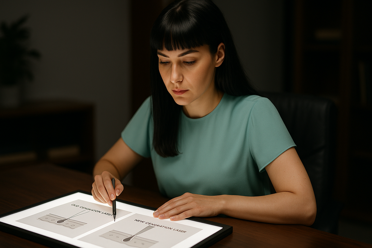 Представьте, что старый лазер — это широкоформатный прожектор, который заливает светом всю сцену. А новый — это точечный снайперский луч, который попадает в цель с ювелирной точностью, не задевая декораций. Именно поэтому современные аппараты позволяют работать даже со смуглой и загорелой кожей (конечно, не сразу после пляжа, а соблюдая протокол) с минимальным риском.