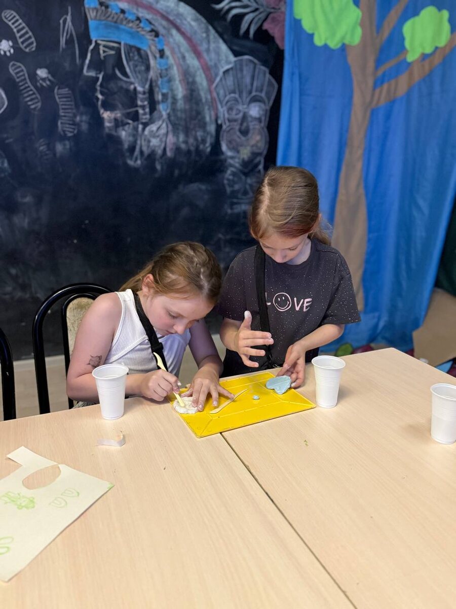 Добрый день от команды 9️⃣🔤⭐️ В первой половине дня у нас была анимационная зарядка🕺💃 После неё мы отправились делать бомбочки для ванны🛁 и делать аппликации! Далее мы отправились лепить из глины🏺 и играть в нейроклассики! Затем мы отправились плести из бисера 📿 и медитировать🧘🧘♀️🧘♂️ А потом мы отправились играть в РИФМОБОЛ!🤩 До встречи!