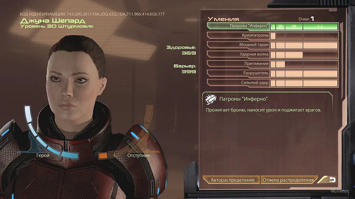 Помимо крутой биотики, как видите, класс обладает двумя видами патронов, которые можно применить к пистолету, дробовику и пистолету-пулемёту. Ну и, если хотите, ближе к середине игры, добавите в свой арсенал снайперку или винтовку на базе Коллекционеров.