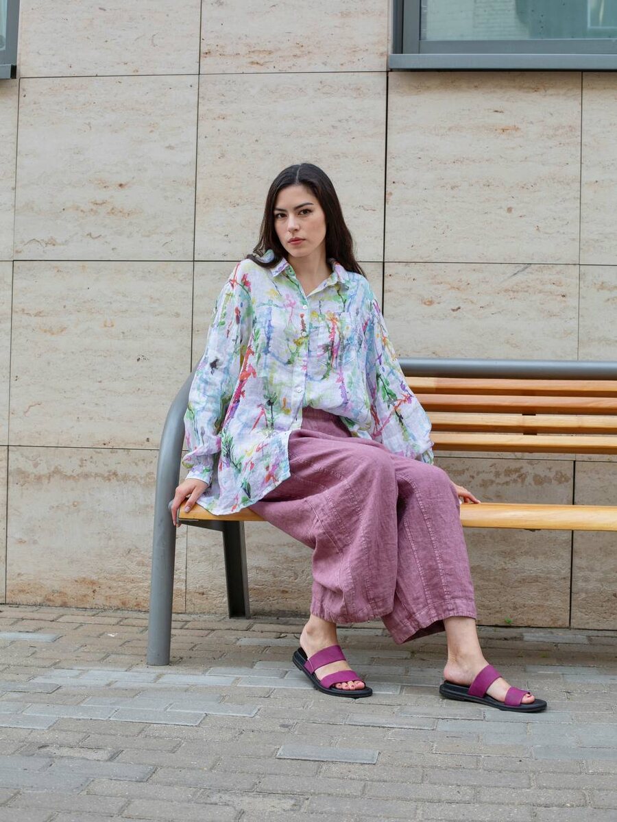 Комплект от GRIZAS — воплощение бохо-элегантности и натурального комфорта. Белая льняная блуза украшена актуальным разноцветным акварельным принтом, придающим образу свежесть и художественную выразительность. Широкие укороченные брюки из 100% льна идеально дополняют образ, создавая свободный, дышащий силуэт. Натуральные материалы, авторский крой и внимание к деталям делают этот ансамбль универсальным выбором для летнего сезона. Для оптового сотрудничества пишите нам: 📲-в директ 📲-по номеру 8 800 511 51 95 📲- +7 495 146-92-72 📲Наш сайт — https://sollery.pro ✉️-на почту info@sollery.fashion