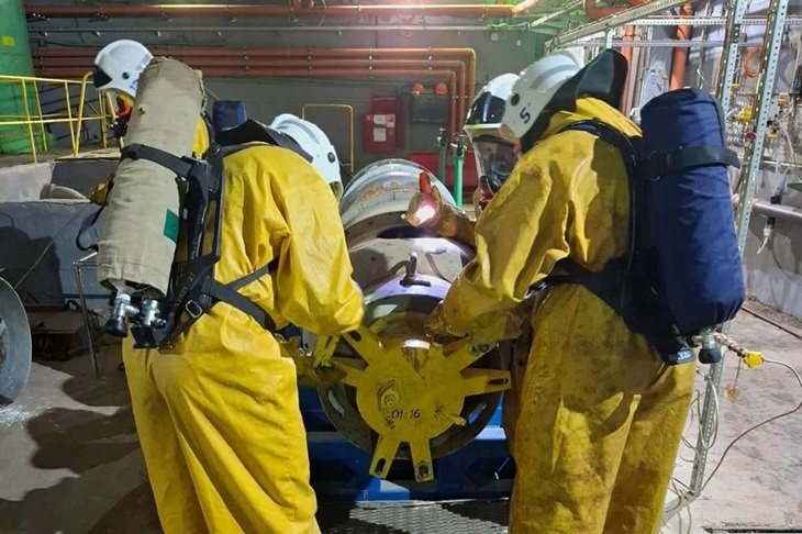 Сотрудники «Концессии водоснабжения» и службы спасения провели учения по условной ликвидации хлора при утечке на водоочистных сооружениях. Тренировка прошла в Тракторозаводском районе. Согласно легенде, из-за обрушения части конструкций в здании был поврежден контейнер с хлором. Выброс был сымитирован при помощи специального устройства, которое генерирует смесь хлора и воздуха. После получения сигнала, оператор оповестил сотрудников и службу спасения, после чего включил режим водяной завесы, которая используется для локализации хлора. Далее весь персонал эвакуировался с места ЧП. Фото: «Концессии водоснабжения»