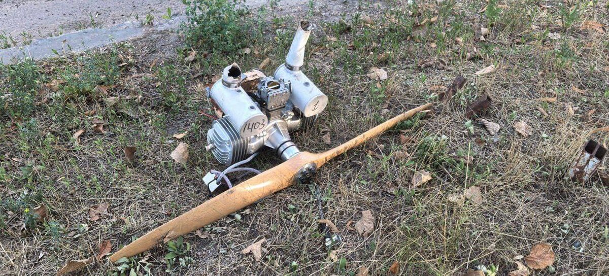 Обломки дрона самолётного типа рухнули на краю восточной части города, вдали от жилых домов.